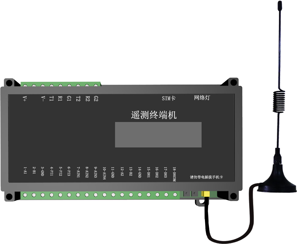 GY105型遥测终端模块RTU,1路485接口,1路232接口,1路4-20mA接口,1路参数设置接口,兼容4G/3G/2G(移动、联通、电信)全网通通讯网络。支持串口仪表,模拟量仪表的实时采集通讯。